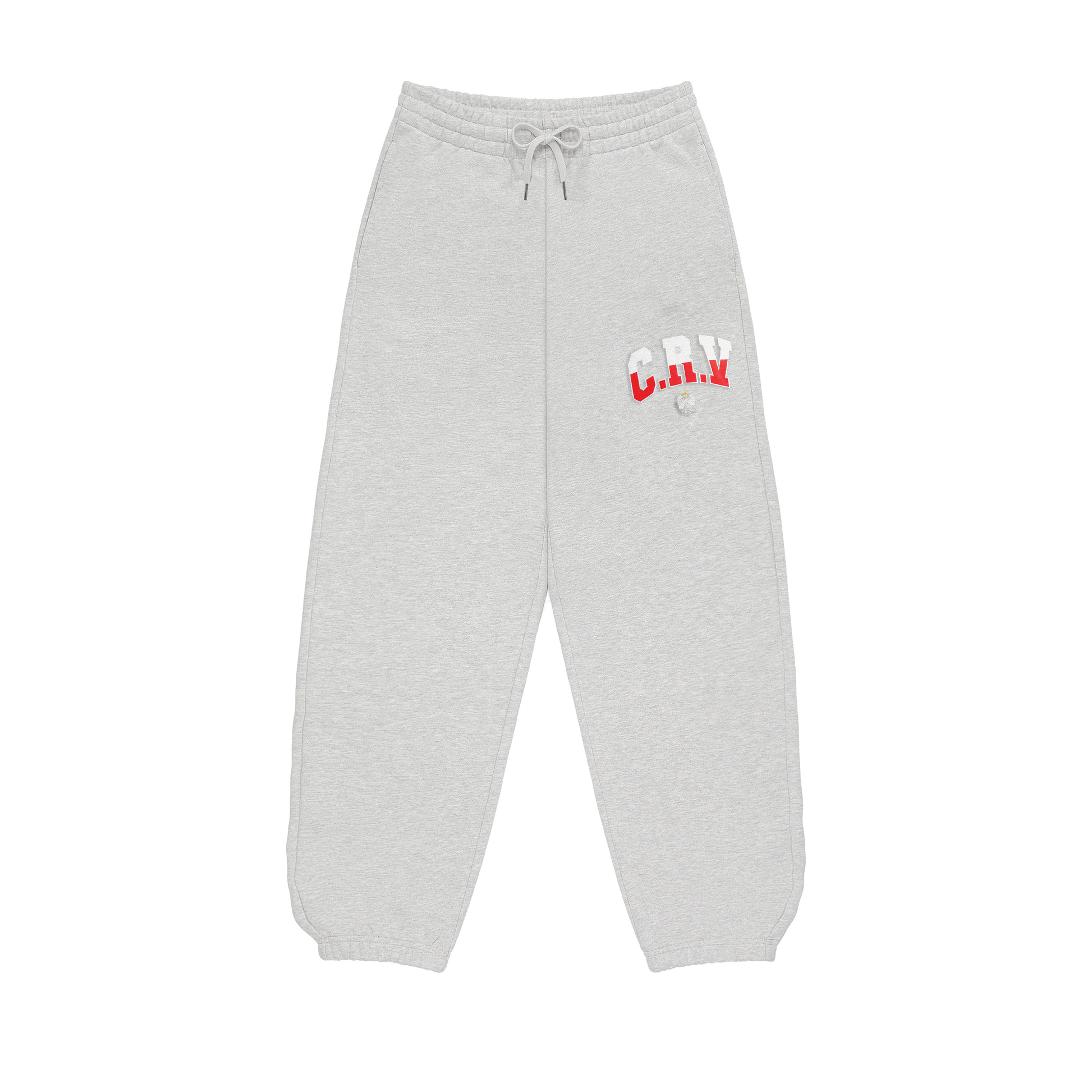 DETAILS: EMBROIDERY ON EITHER SIDE OF LEG WITH A THICK WAISTBAND AND CUFFS AT BOTTOM